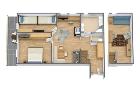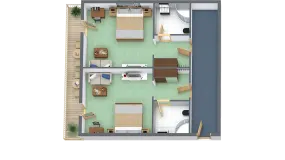 | BIO Familien Suite Typ 2 (80 qm) ✔ ein Wohn- und 2 Schlafzimmer (mit Doppelbett für die Eltern und Betten hintereinander im Kinderzimmer) ✔ Spiel- und Schlafgalerie mit Schlafchouch vom Wohnzimmer aus begehbar ✔ 3 Zustellbetten möglich ✔ Ideal für Familien mit bis zu 6 Kindern ✔ Badezimmer mit Dusche und WC seperat ✔ Zimmer komplett verdunkelbar ✔ Dieses Zimmer verfügt zusätzlich auch über LAN - Anschluss ✔ mit Balkon