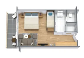 | Familien Suite Typ 1 (30-40 qm) ✔ ein Eltern- und ein separates Kinderschlafzimmer/-schlafbereich mit Stockbett ✔ 2 Zustellbetten möglich ✔ Ideal für Familien mit bis zu 4 Kindern ✔ Auf Wunsch mit 2 Duschbädern möglich ✔ Zimmer komplett verdunkelbar