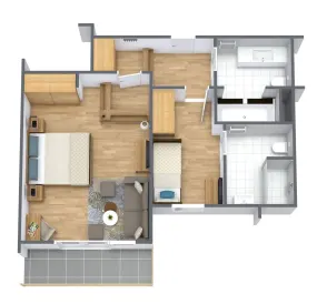 | Familiensuite Typ 2 (50-60 qm) ✔ ein Eltern- und ein separates Kinderschlafzimmer mit Stockbett ✔ 2 Zustellbetten möglich ✔ Ideal für Familien mit bis zu 5 Kindern ✔ 2 Bäder (im Elternbereich mit Badewanne, im Kinderbereich mit Dusche) ✔ Zimmer komplett verdunkelbar ✔ auf Wunsch mit Balkon oder Dachterrasse